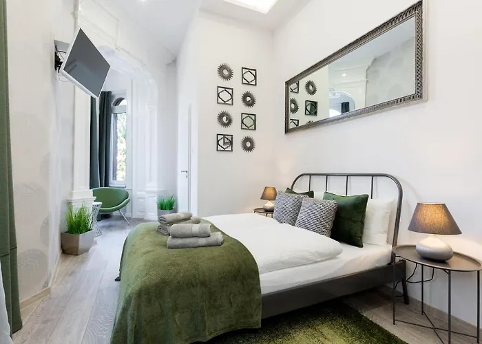 Gelegen in de Angyalföld - Margitsziget wijk, circa 15 minuten wandelen van Terror Háza Múzeum. Naast een zitruimte, een vlakscherm TV met satellietkanalen en wi-fi zijn er in de kamers ook bedden met leeslampen, warme en rustgevende verlichting, linnengoed.